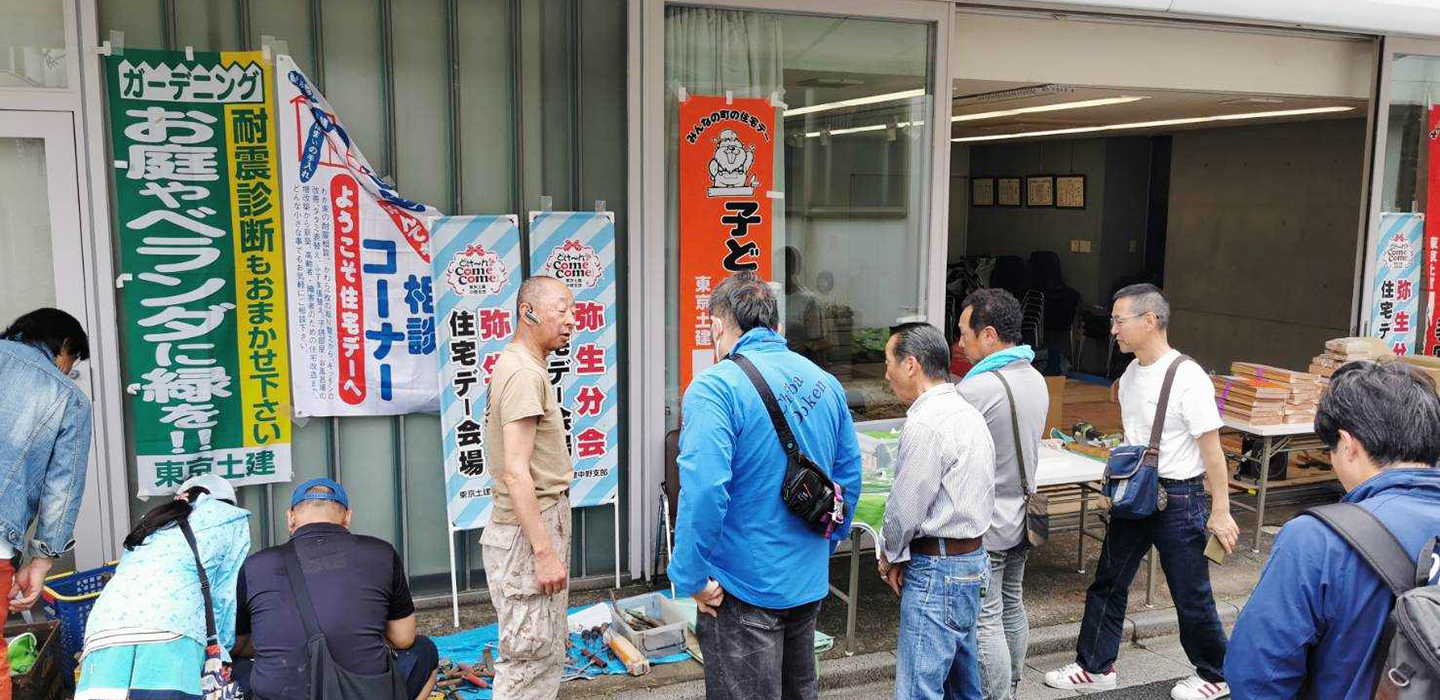 現在は、住宅デー各会場で建設業体験や防災減災など、私たちの技術と技能を分かりやすく伝える企画も充実してきています。また会場によっては各種模擬店もあります。地域のみなさまに愛され育てられる住宅デーを目指し、東京土建36の支部が目標を立てて取り組みを進めています。